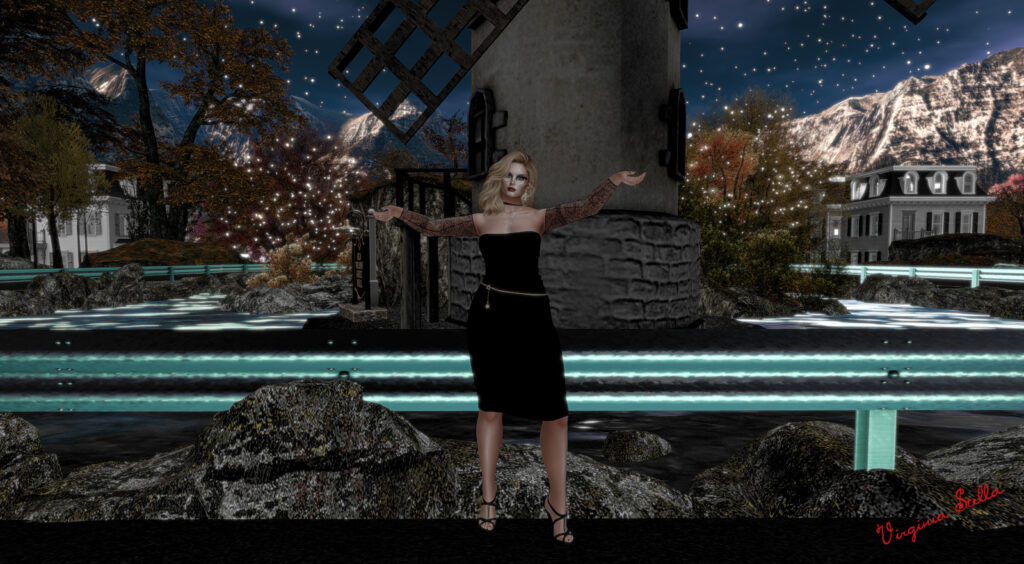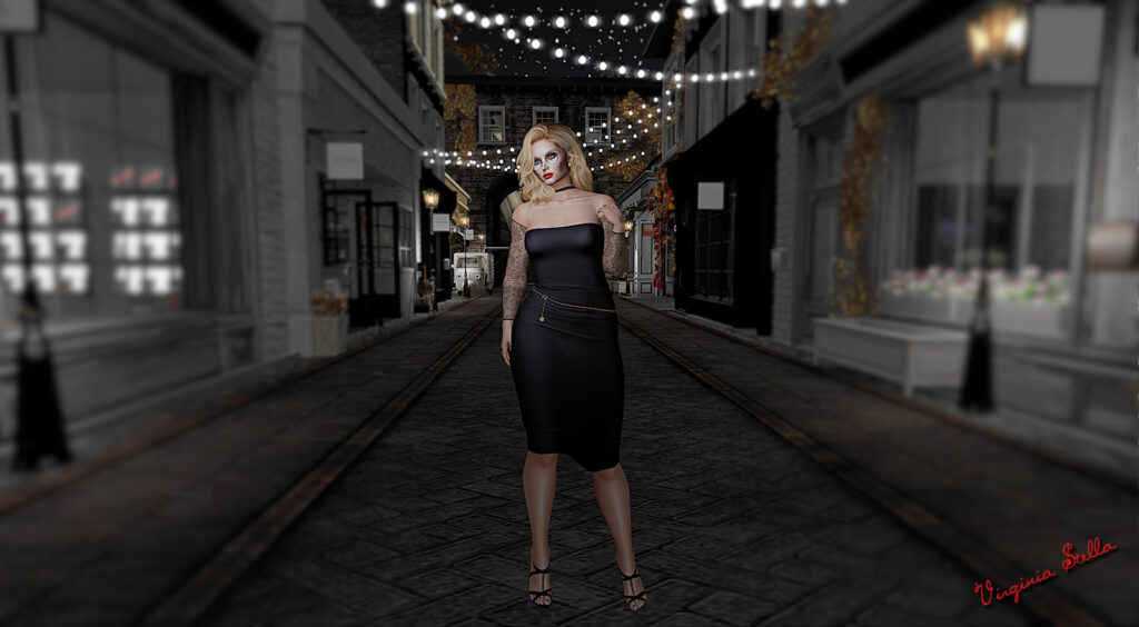For visit this sim, I chosen a very elegant outfit: the Caterina by Nut & Squirrel, it’s a midi dress with a nice bolero, the fatpack has a HUD full of colors for the dress and the jacket. I added some elegant jewelry by Ashbourne & Burleigh: the MotG Bass for keep in mind how much music is important for me.